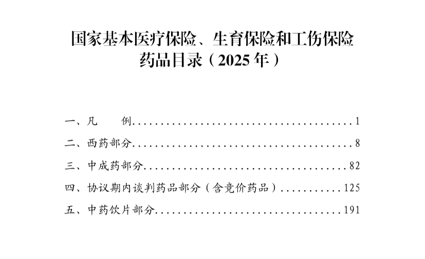 国家基本医疗保险、生育保险和工伤保险药品目录(2025年)