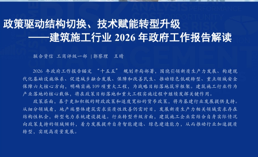 建筑施工行业2026年政府工作报告解读:政策驱动结构切换、技术赋能转型升级